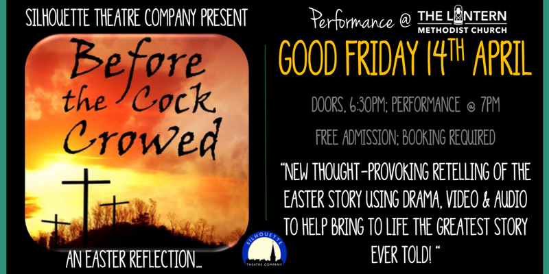 The Lantern Methodist Church are hosting Silhouette Theatre Company’s production of Before The Cock Crowed on Good Friday evening as part of our Easter reflections. The show is a dramatized piece portraying the remarkable story of Jesus through the eyes of Peter.  The 50 minute show uses drama, video and audio to help to bring the story to life for the audience.
