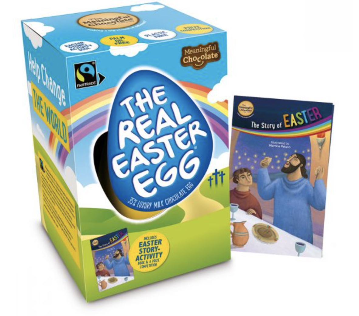 Out of the 80 million Easter eggs sold in this part of the world every year, The Real Easter Egg is the only one which has an Easter storybook in the box, is made of Fairtrade chocolate and supports charitable projects. All the eggs are Palm Oil free.   You can buy them at any of these suppliers.