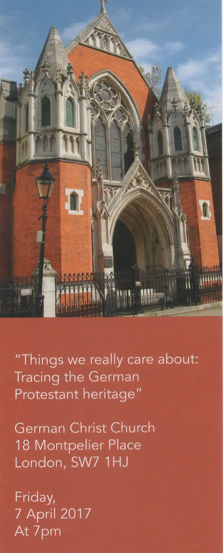 This month’s invitation celebrating the Reformation with one of the British and Continental churches in London comes from the German Christ Church in Knightsbridge. “Things we really care about: Tracing the German Protestant heritage”, will be held on Friday 7 April at 7pm. All are welcome.