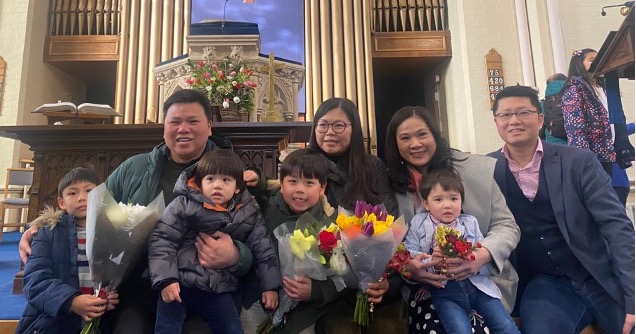 Sunday 15 January was a happy day for everyone at Trinity as we celebrated five baptisms – two adults and three children. All were members of our Chinese Group, part of the Trinity family. It was also a joy to welcome Gilbert and Sheryl as Trinity members at the service.