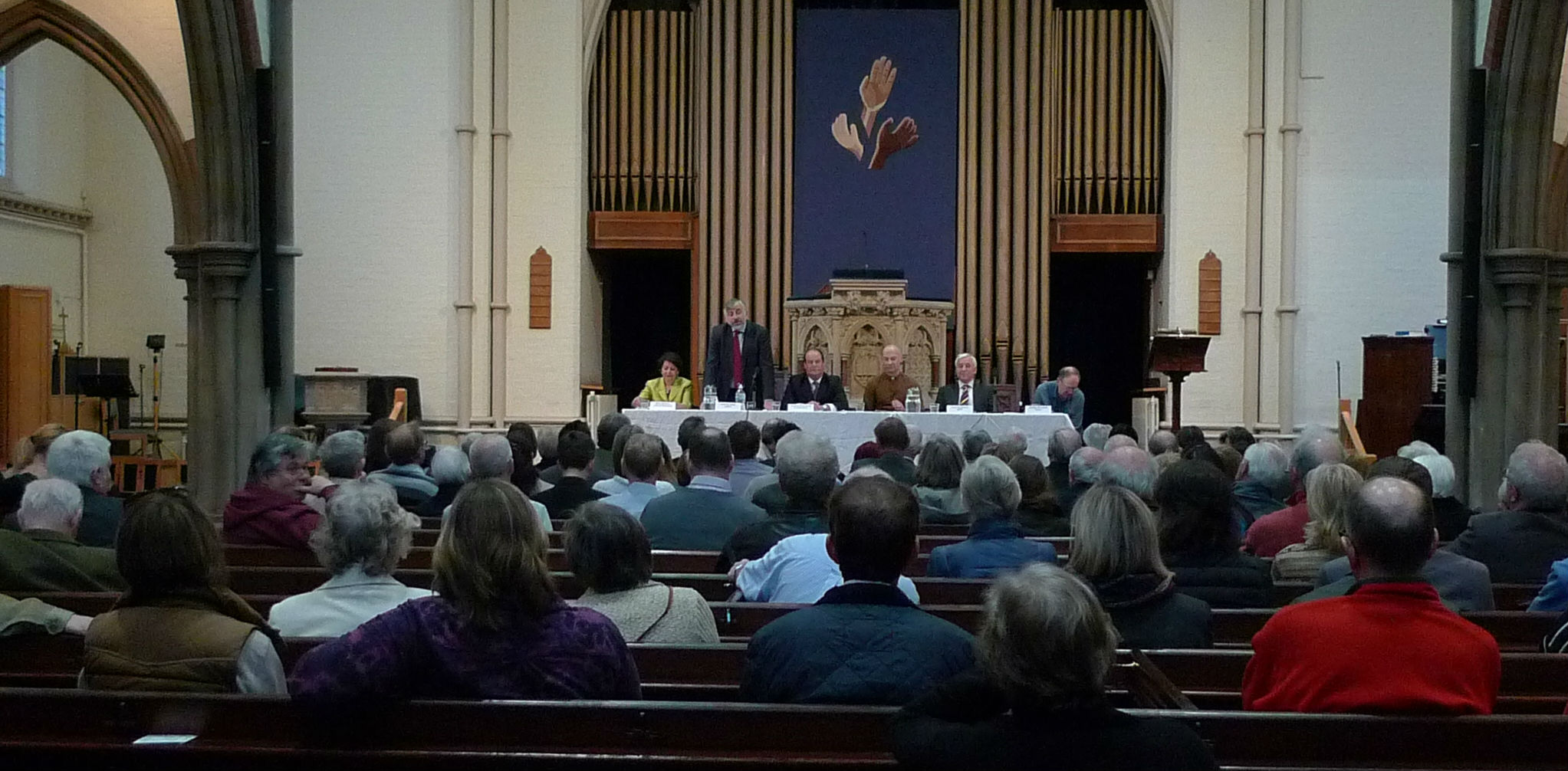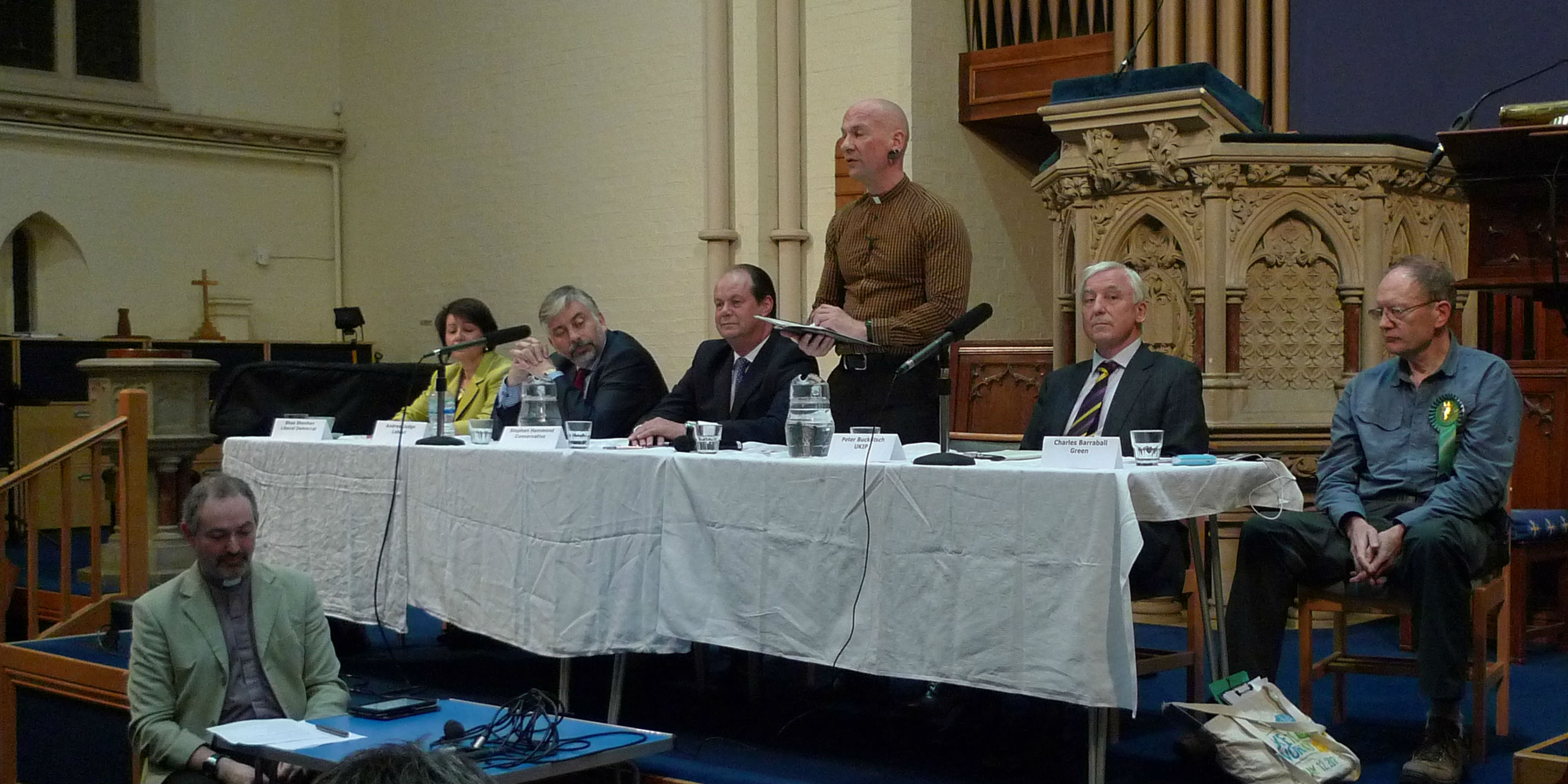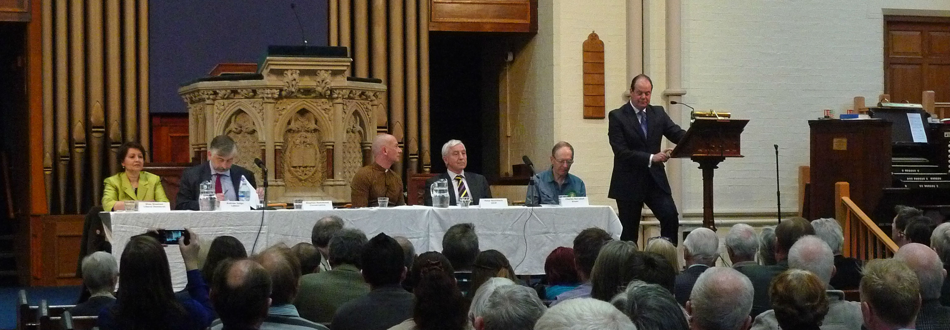 There was a good turnout this evening (Tuesday 21 April) to hear the five candidates for our constituency. Chaired by the Revd Clive Gardner of St Mark’s church, the Conservative, Green, Labour, Lib Dem and UKIP candidates introduced themselves, and spoke of their recent campaigns and their hopes for the future, and fielded questions from the audience.