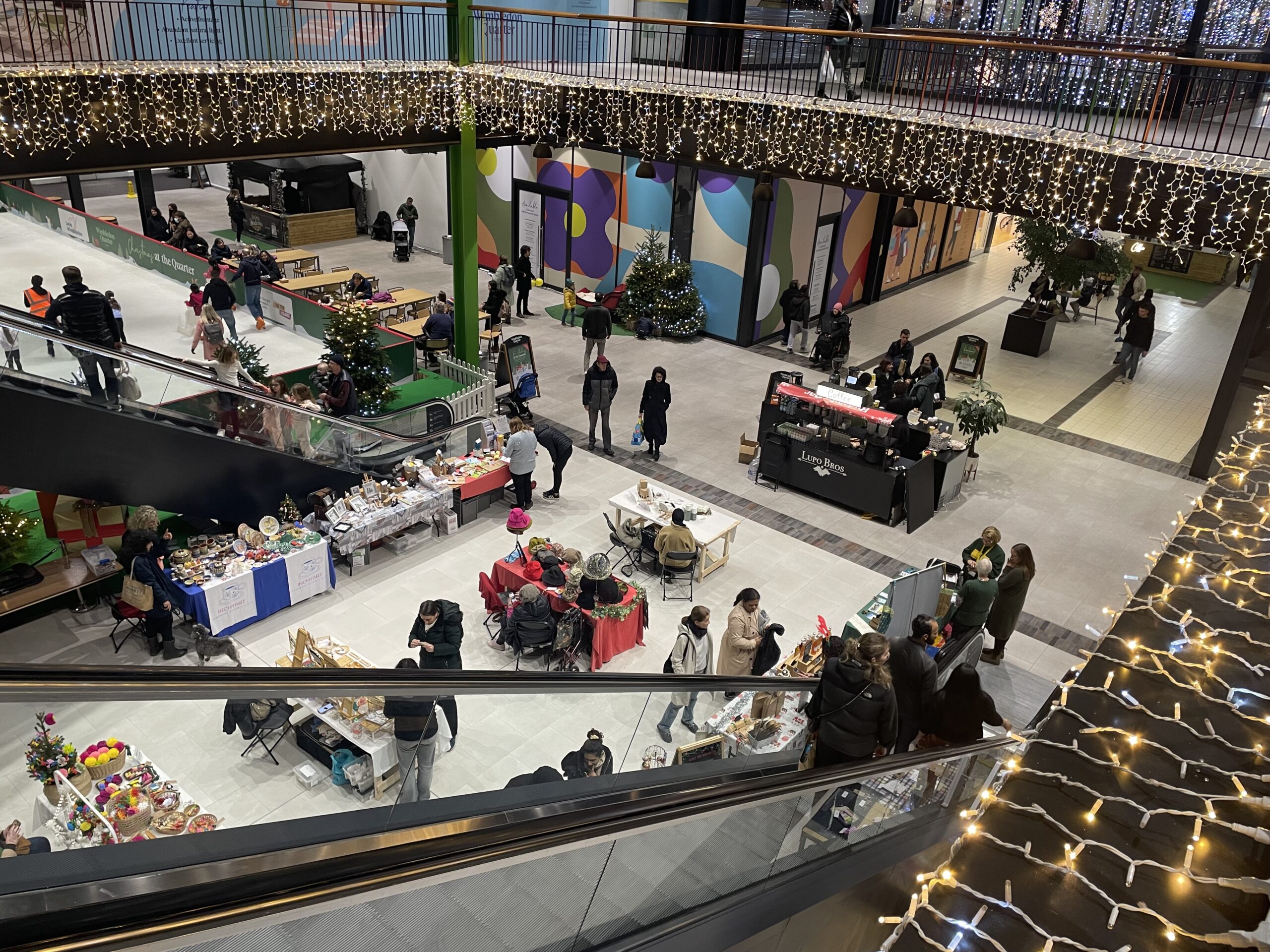 Held in Wimbledon Quarter this year, the event was attended by hundreds of people who enjoyed browsing the stalls, joined a Monkey Music session, or sat down at the Make and Take Tables to make their own Christmas cards. Some even took to the ice at the adjacent festive ice rink. (Click on individual photos to enlarge them.)
