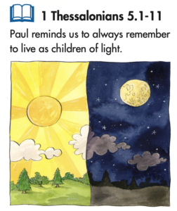 Since we are unable to meet at church for the time being, here are the Junior Church resources for tomorrow. We’ve been studying Paul’s letters to the Thessalonians and this week’s reading focuses on light and darkness.
