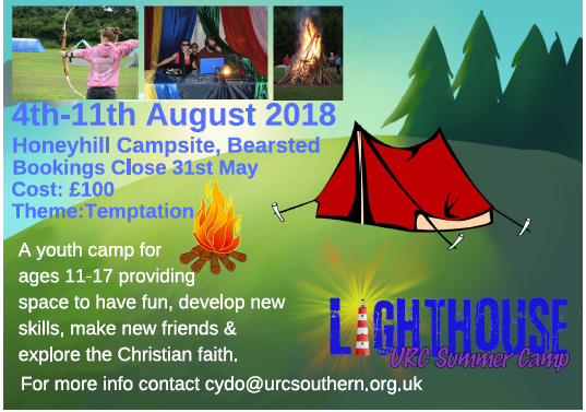 We are also looking for more leaders aged 18+ to help as part of the camp leadership team. If you are interested in getting involved, please contact cydo@urcsouthern.org.uk to discuss further.