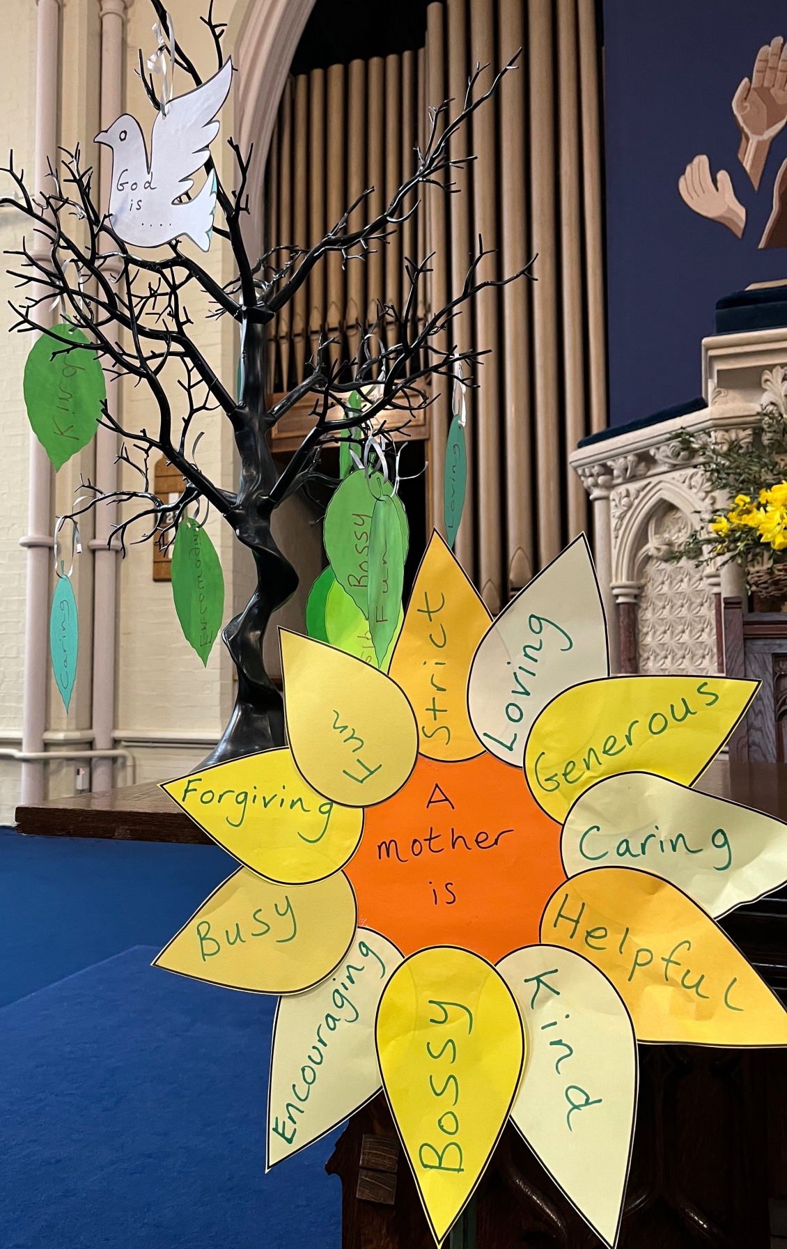 Our worship on Sunday was for all-ages to mark Mothering Sunday. On this bright Spring flower Junior Church reminded us of what our mothers mean to us every day, and the leaves on the tree represented how God cares for us in the same ways ……