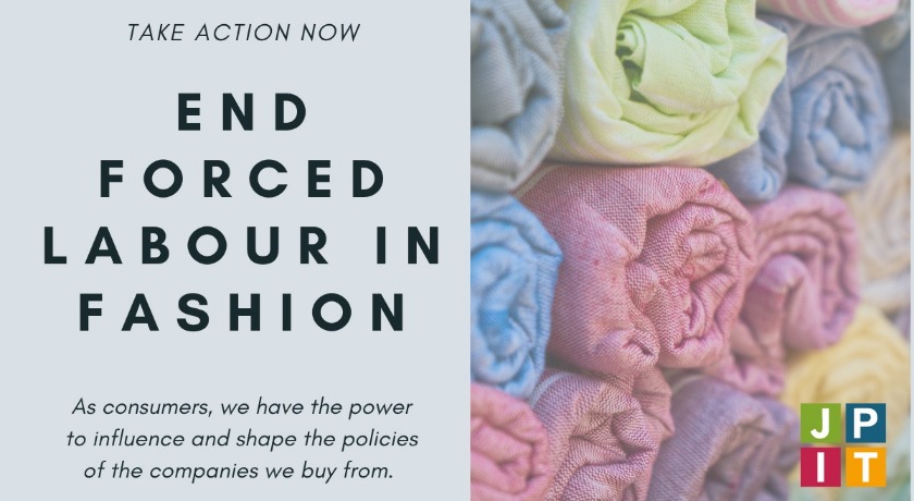 Using its template, JPIT is encouraging members of the URC to write to one or two fashion brands they frequently shop at to ask them to be more transparent with their supply chain and ensure that they are not using forced labour anywhere in their supply.