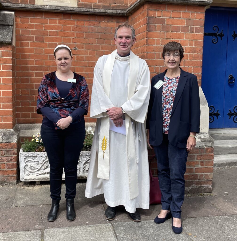Sarah and Grace with the Revd Stephen Lewis after the service