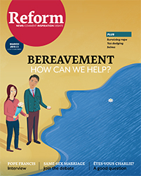 In the latest edition of Reform find out how churches, charities and individuals can help people going through a bereavement. There is also an interview with Pope Francis, a review of the award-winning film Selma and “A good question” in French: Etes-vous Charlie?