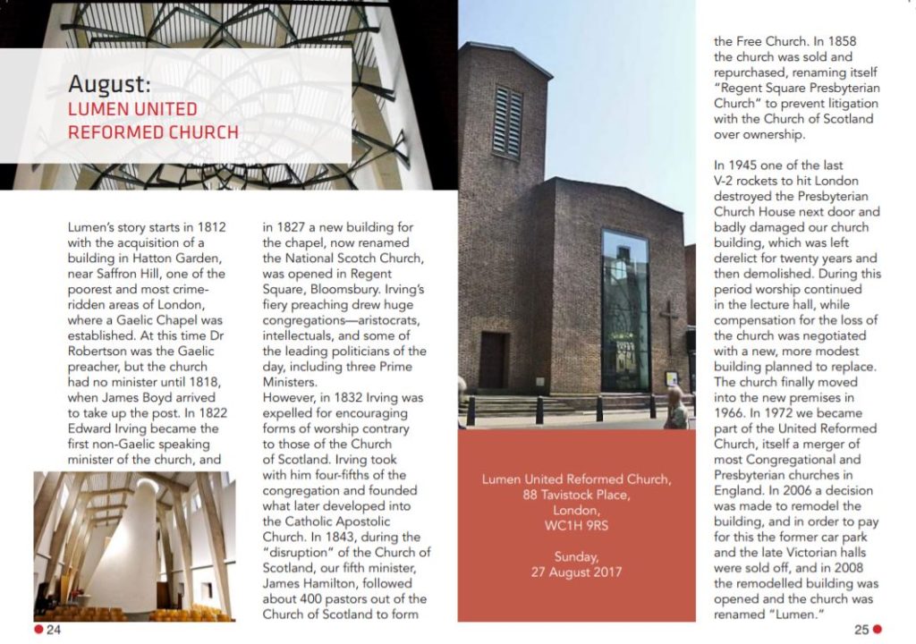 The August Reformation event in London is hosted by Lumen United Reformed Church (88 Tavistock Place, WC1H 9RS) on Sunday 27 August.