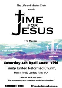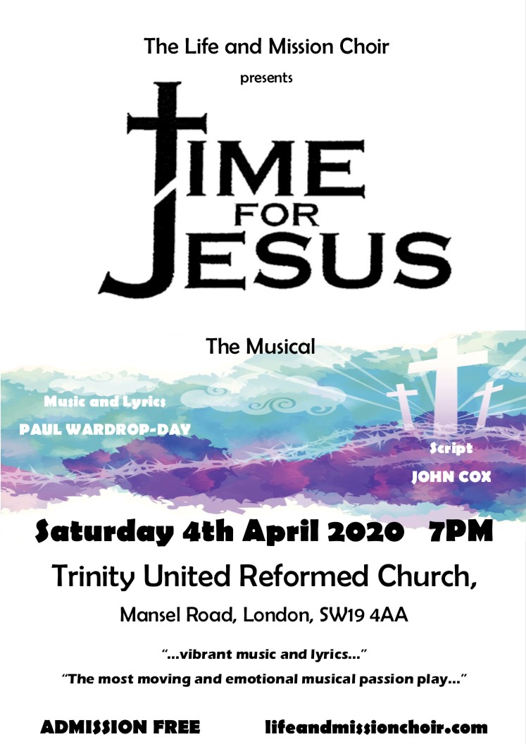 The Life & Mission Choir have taken the decision to cancel all performances of their musical “Time for Jesus” scheduled for late March and early April, including at Trinity on 4 April.