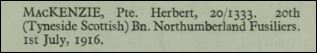 Among the dead that day was Herbert Mackenzie, aged about 28.