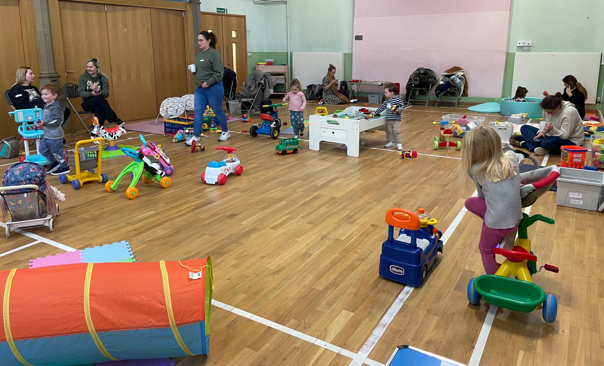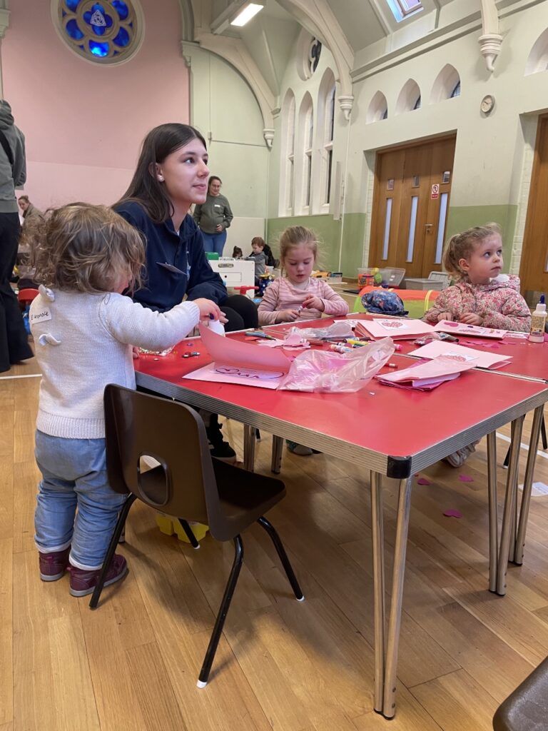 We had 19 children at Trinity Toddlers today.  Numbers are steadily increasing, and it was lovely to see the children, parents, grandparents and carers enjoying themselves together in the Old Hall.  The children were very busy with crafts (making Valentine’s Day cards!) and toys, while the adults enjoyed coffee and biscuits!