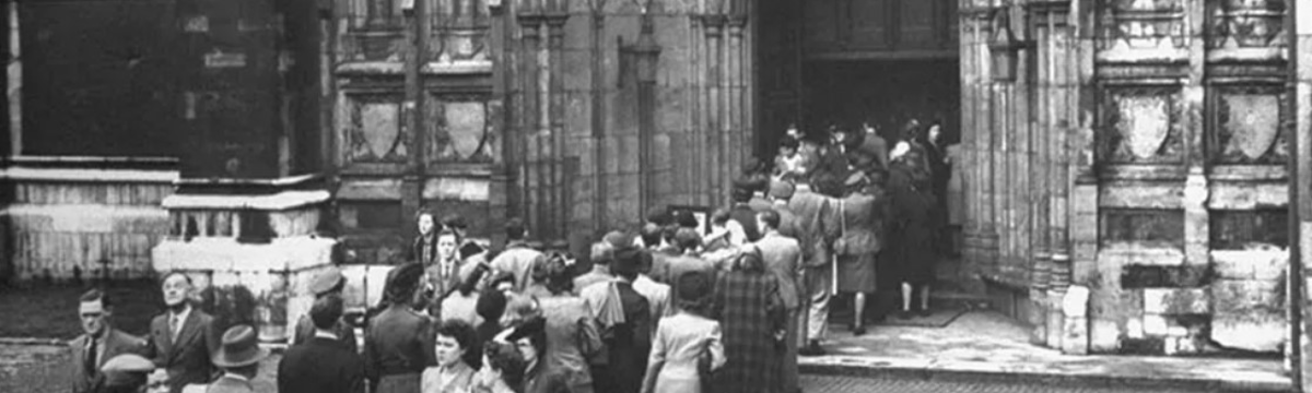 On Victory in Europe Day, 8 May 1945, some 25,000 people went to Westminster Abbey to give thanks at short services of ‘thanksgiving for victory’ which were held every hour from 9.00am to 10.00pm. An estimated 25,000 people attended during the day, with the Lord Chancellor and the House of Lords attending at 3.00pm.